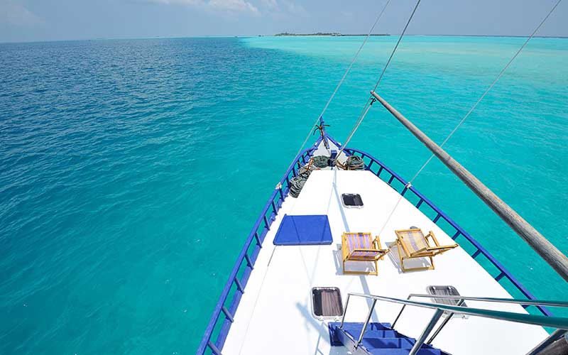 En barco por Maldivas.